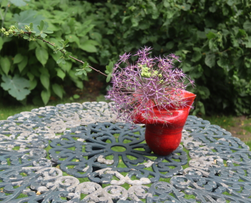 Een zonnige bijeenkomst in de tuin van Marjanne Voorhorst.